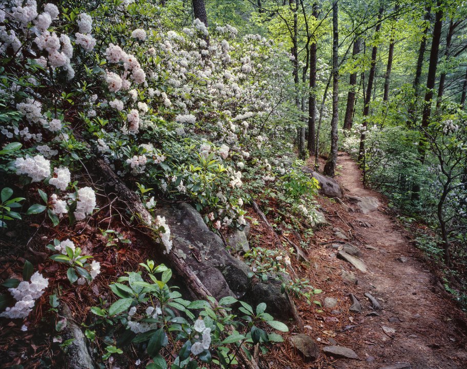 3160 Ft./9 Mile Trail. Black Mountains view, meets Little Buck Creek Trail ending at Woods Mountain Trail. US 221 North, left on Tom's Creek Road. Right onto first dirt road, head is second road on left. Easy-Moderate.