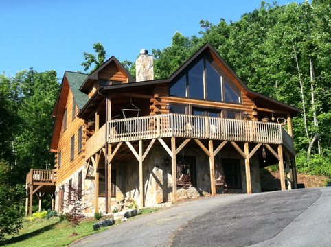 Change your perspective at Sydney Falls Cabin, a classic three-story timber frame log home near Black Mountain, NC. This Catawba…