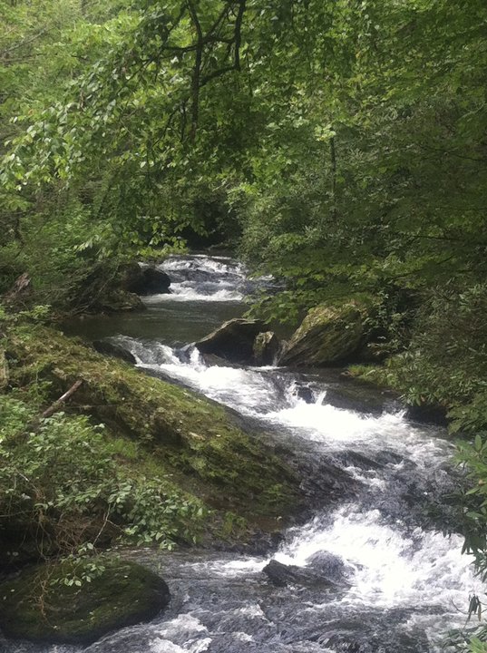 A rushing trout stream, stocked with Brook Trout, Rainbow Trout and Brown Trout, with handicapped access overlook on left side of road as you approach the Curtis Creek Recreation Area and campground. GPS coordinates are 35.655295, -82.179128.