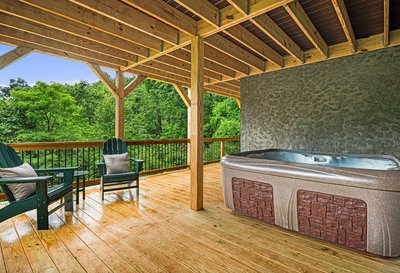 Wind down your day with a sunset view by the fire pit on the back deck. Your group will appreciate the spaciousness of this thoughtfully designed home when bedtime arrives. The main level primary suite offers a private and relaxing spa experience, complete with a jetted soaking tub. Two upper-level bedrooms share a full bath and provide picturesque views from the loft. Escape to the lower-level recreation room for a friendly game of ping-pong, or relax in the fourth guest bedroom and a cozy bunk room featuring two sets of single-over-single bunk beds, ideal for children or extra guests. Looking for a log cabin rental with a mountain view from the bubbling hot tub? Sydney Falls Cabin delivers all of this and more, making it the ideal Black Mountain escape to elevate your Western North Carolina vacation experience.