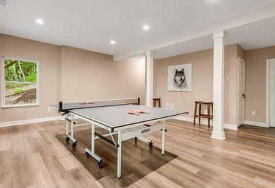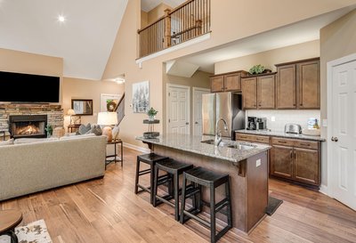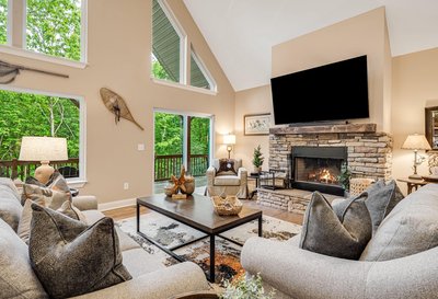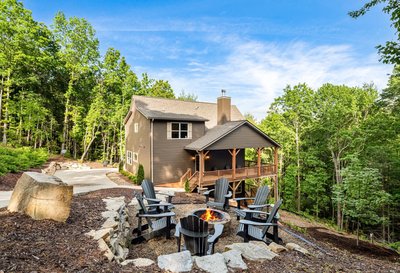 Under the evening stars, a bonfire in the stone fire pit sets the mood for a romantic moment or a fun-filled time for the whole family. If your group enjoys games, the ping-pong table on the lower level is perfect for an evening of entertainment. Wilderness Lodge's spacious floor plan includes bedrooms on all three levels, an advantage for multiple families traveling together. The primary suite on the main level provides a sanctuary for self-care. Ease your aches with a soak in the deep tub before a sound night's sleep. This private mountain cabin rental is ideal for adventurous groups who want to explore the natural beauty of Western North Carolina.