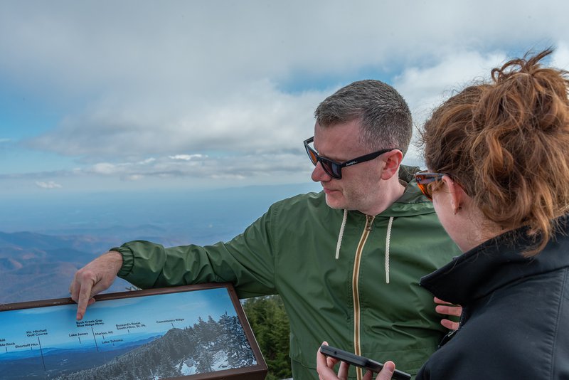 Bring a jacket or warm clothing, because the temperature can be up to 20 degrees cooler on Mount Mitchell.