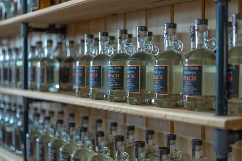 The 60-proof Apple Pie Shine is a more recent addition — it incorporates apple pie spice and is delicious mixed with hot apple cider. And the 100-proof IL-LIC-IT Gold Shine is aged with oak spirals to impart a whiskey-like flavor.
