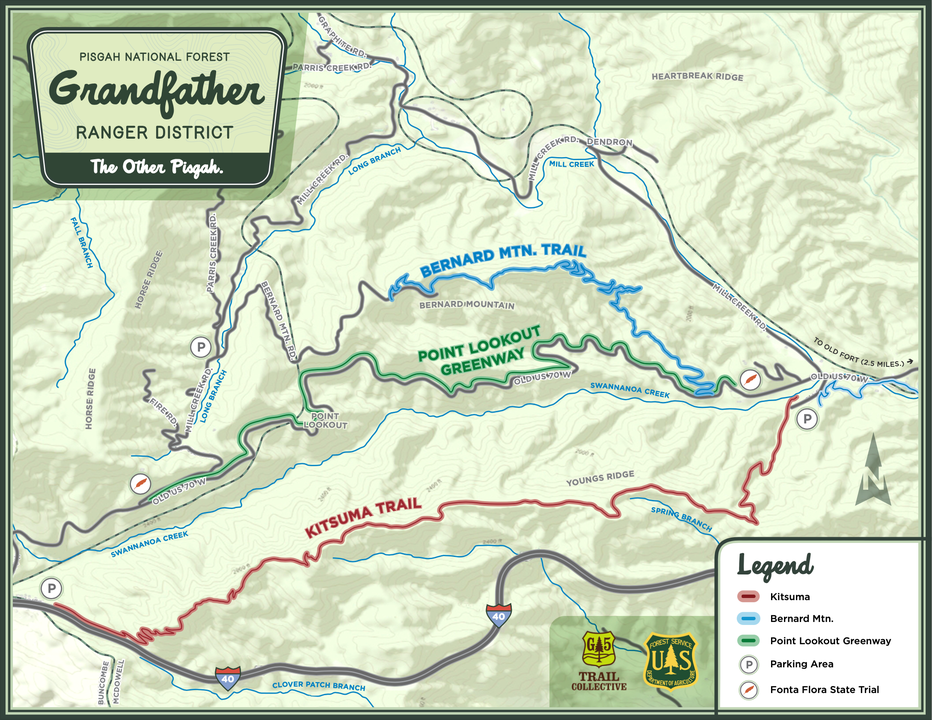 The Grandfather Ranger District, in partnership with its community partners, is delighted to announce the grand opening of the newly constructed Bernard Mountain Trail. This trail marks an important milestone in the ongoing 42-mile trail expansion project in the Old Fort area. The collaborative efforts of Camp Grier's G5 Trail Collective, Eagle Market Streets Development Corporation, People on the Move Old Fort, and the U.S. Forest Service Grandfather Ranger District, known as the Catawba Vale Collaborative, have made this trail expansion possible.