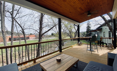 These elevated, single story short term rentals are located in the heart of downtown Old Fort. Featuring ride in / ride out access to Pisgah National Forest and bike friendly setup beneath the accommodations. Set along Mill Creek, these homes can comfortably sleep 12+ during group events.