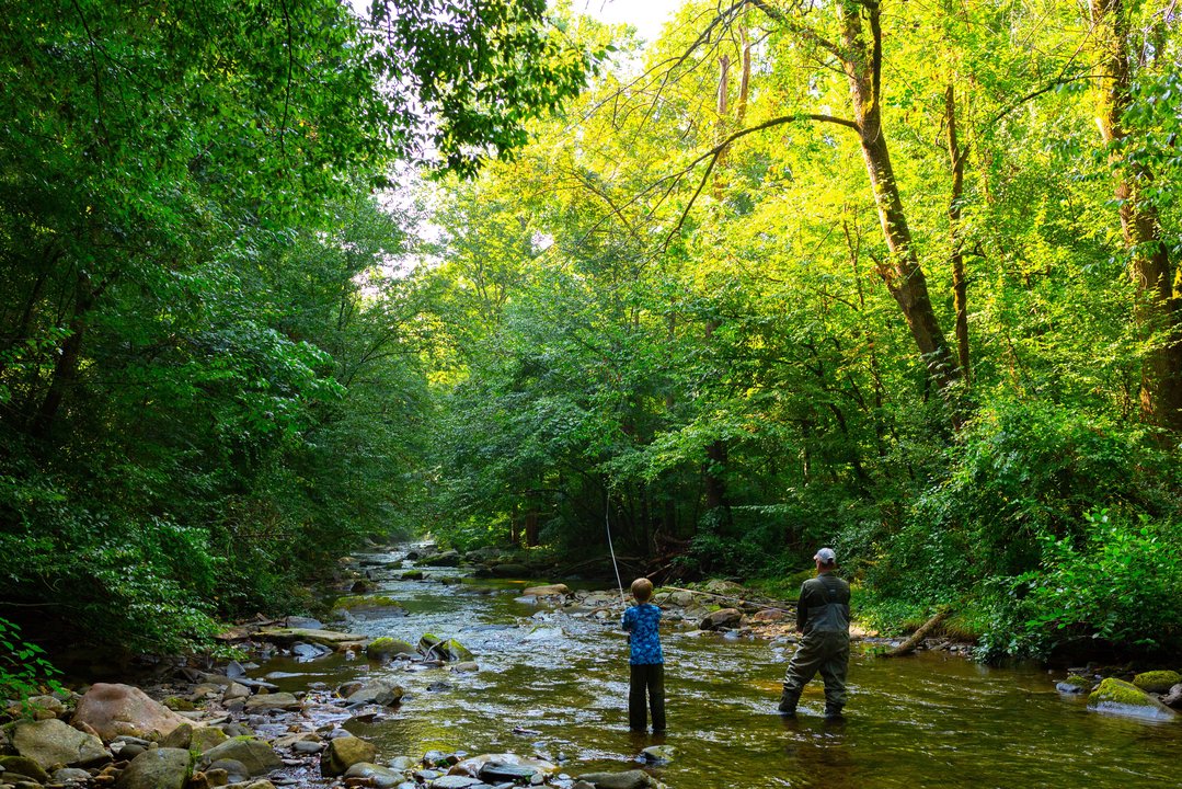 The 8-mile round-trip granddaddy of challenging trails in the Curtis Creek area is Snooks Nose Trail. Climbing almost vertically from 1850 feet up to 4750 feet, you’ll understand why this trail is rated a 10 out of 10 for difficulty. The trail originates at the Curtis Falls Campground, where you may consider spending the previous night so you can start out early the next morning. You’ll follow the winding trail along an old logging road to a cove named Slick Falls Branch. That’s where the casual hiking ends.