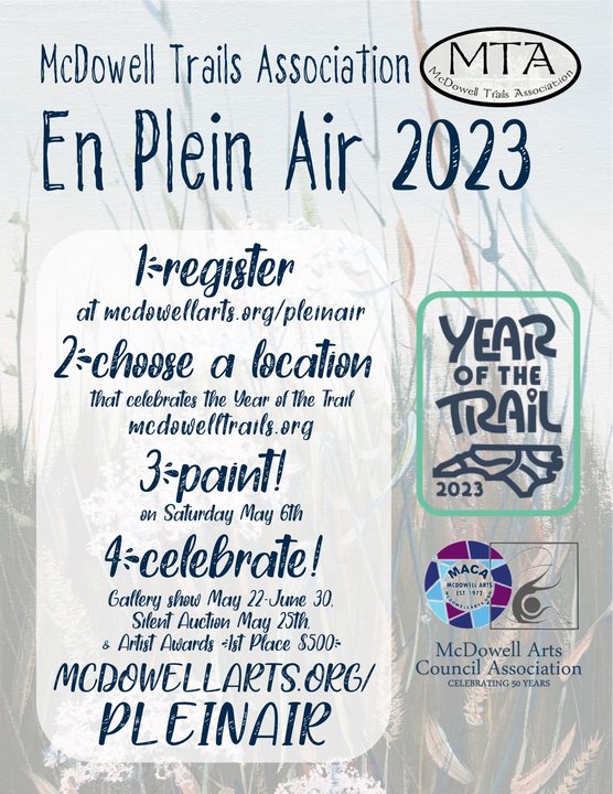 2023 is the Year of the Trail and the 50th anniversary of the NC Trails System Act. MTA En Plein Air 2023 is a project of McDowell Trails Association (MTA) and McDowell Arts Council Association (MACA).