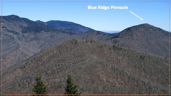 At 5,665 ft. Blue Ridge Pinnacle is the highest point in McDowell County. Three county lines meet at its summit, and it stands only a few miles from Mt. Mitchell, the highest peak in North Carolina and east of the Mississippi River.