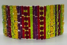 This class is perfect for beginner and intermediate fusers! Students will use a variety of glasses to create a candle screen. Use holiday colors as shown in the example or choose from many colors to create a color scheme. There is minimal glass cutting involved, but everyone will design their piece. The candle screen measures approximately 4 ½ inches by 10 inches, and each one will be unique. Minimum of 3 students, maximum of 6 students. Cost is $40 A3L members, $50 nonmembers, plus $15 material fee includes glass and 2 firings. Contact Arrowhead Gallery, 828-668-1100 for more information or to register.