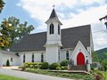 St. John's Episcopal Church is perhaps one of the finest examples of a Carpenter Gothic church in western North Carolina. The main body of the building was built in 1883 with the entrance into the building through the bell tower on the north side. Originally, the building was rather austere, with a traditional rectilinear door leading into a very plain bell tower. In 1903 a more elaborate bell tower (the one. presently in existence) was built in the same location. A woodcarving of the Last Supper, crafted by Marion woodcarver Steve Duncan, hangs above the entrance door.