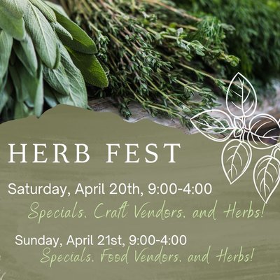 On Saturday, April 20th come enjoy: a wide selection of specialty herbs, special savings on select plants, Home-baked treats from Houston House and drinks and snacks from Leisa's Kettle Corn, Artisan Craft Market selling a beautiful array of handmade goods (including art, metal work, jewelry, leather goods, soaps, prints and stickers!), and shopping from our wide selection of plants at the height of the season!
