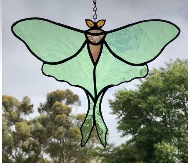 Stained Glass Luna Moth with Catherine Bruggerman. This unique project consists of pre-cut glass and is suitable for indoor or out. Students will clean, foil, flux, and solder their moth. Students will have the option of adding decorative wire or glass beads as well to make it their own. All supplies are included. This is a perfect beginner class. $30 A3L members, $40 nonmembers, plus $16 supply fee.