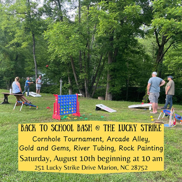 Come join us in soaking up the last rays of summer sun and fun at The Lucky Strike for our Back to School Bash on August 10 beginning at 10 am! We will have a cornhole tournament, Arcade Alley, panning lessons, gem screening, plus rock painting!