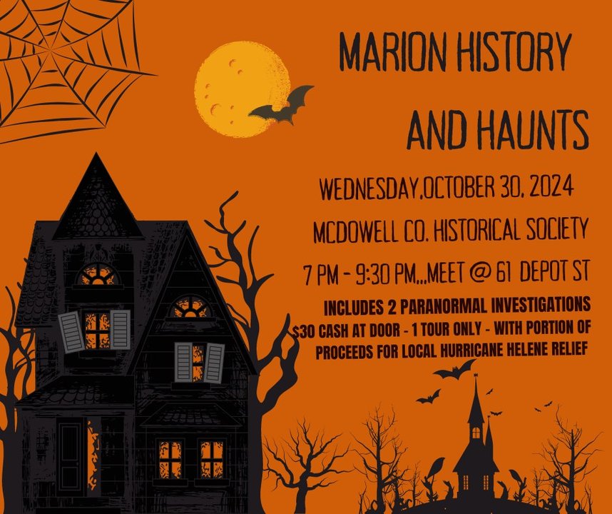 Join the MCHS and P2 Investigations as we team up to uncover Marion's Ghostly Residents and help raise money for the victims of Hurricane Helene.