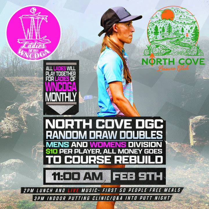 5x world champion Paige Pierce will be hosting a North Cove Fundraiser at North Cove on Feb. 9!!!! There will be random draw doubles starting at 11 a.m. with a men’s and women’s division. This will be followed by lunch with live music from local musician Eric Chesson. Finally a putting competition in the afternoon. Bring out the entire family for a great time. Disc golf, live music, food, drinks, community and games! All proceeds will go towards the course rebuild. We can’t wait to see you back out here!!! More surprises to come.